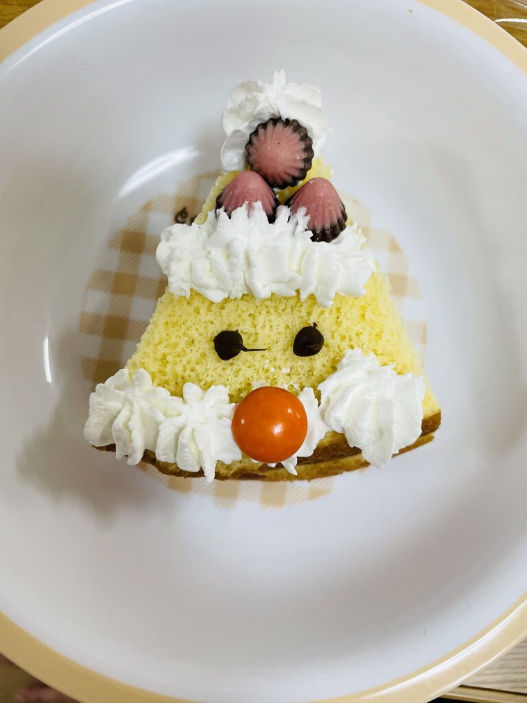 (✳️小さい子はサンタさんケーキのチョコなしバージョンを食べています。)