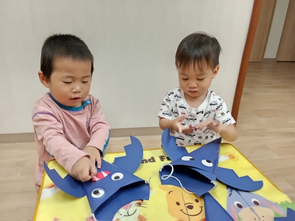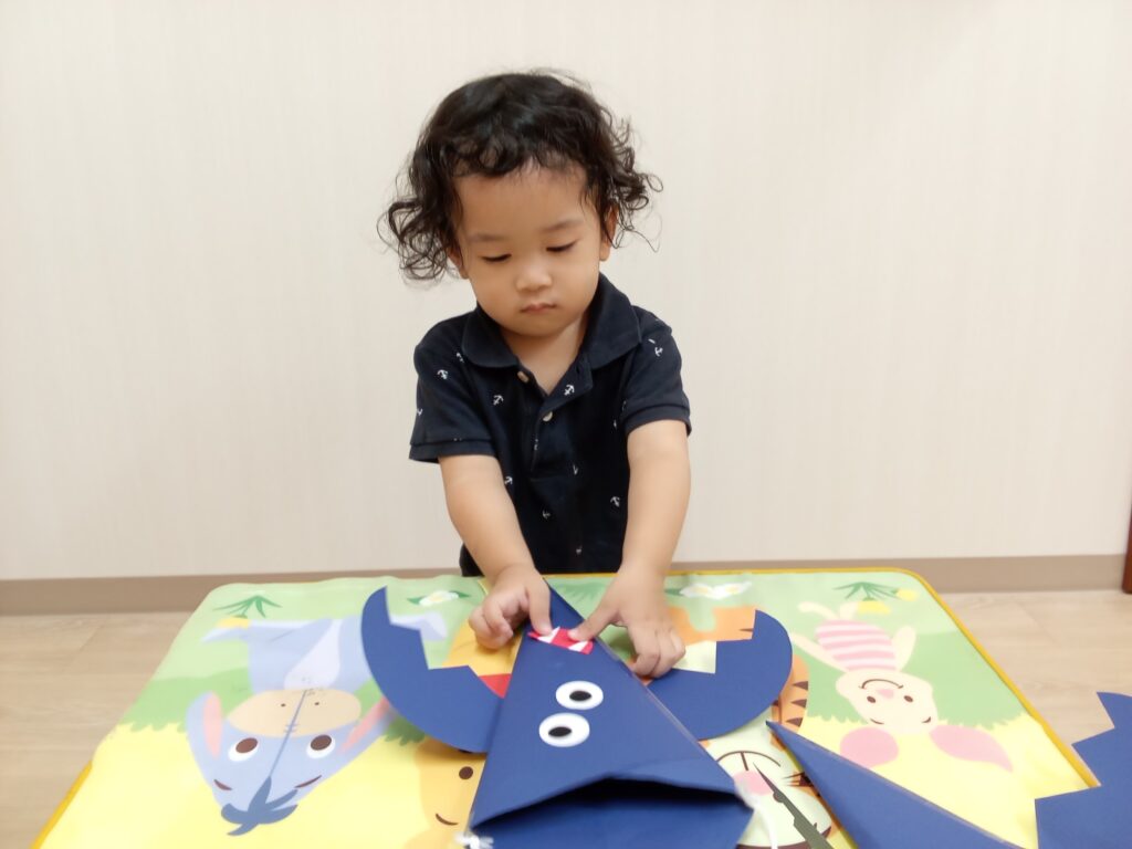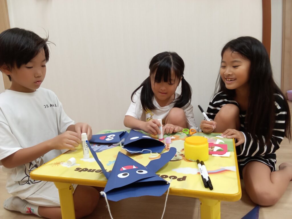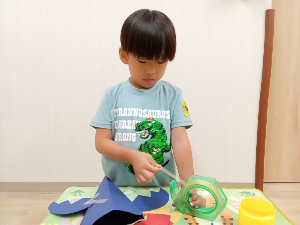 完成すると嬉しそうに持っていました♪大きいグループさんは、顔のパーツを切って貼ってもらいました。