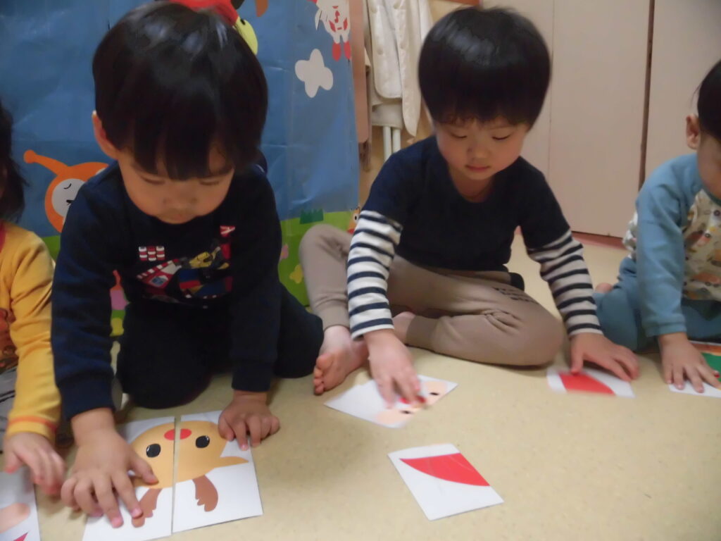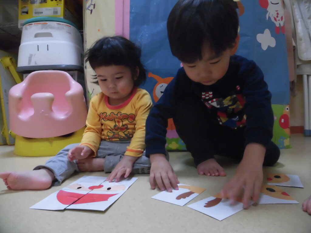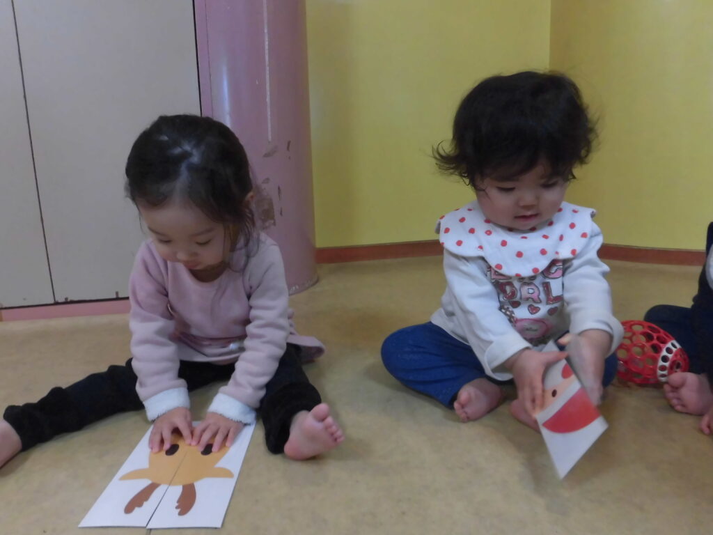 2ピースのパズルはできる子も多く、手を叩いて喜んでいましたよ😄