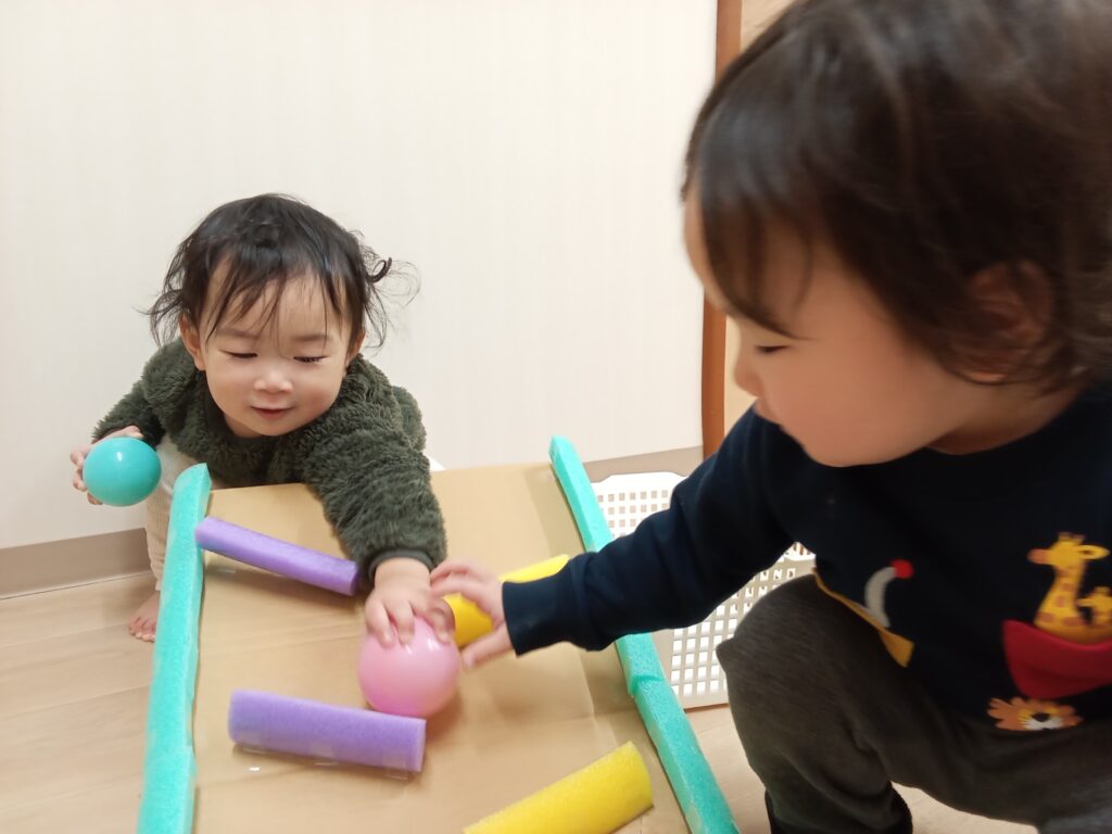 ボールの方は転がすとお隣のお友達と一緒にボールの動きを真剣に見つめていました✨