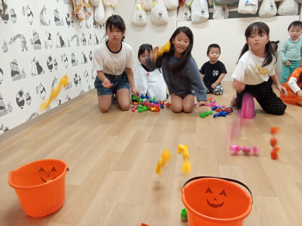 大きい子達は早集め競争をしたり、投げてカゴに入れたりとゲームを楽しみましたよ❗️