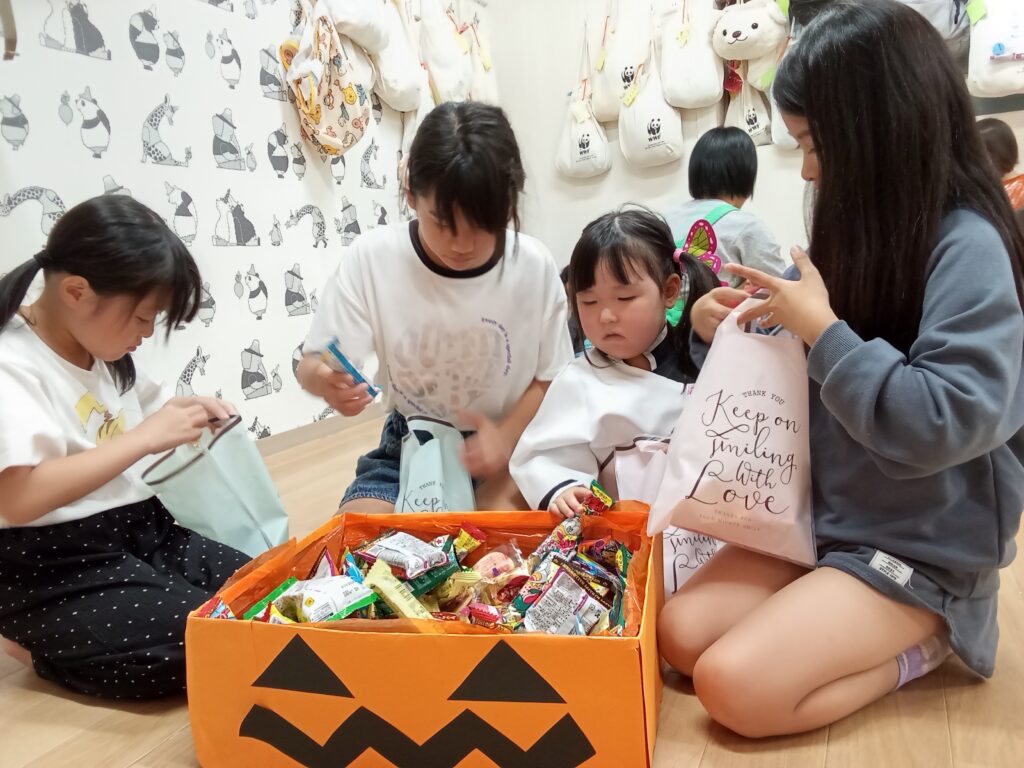 お菓子BOXから好きに袋詰めをしました。