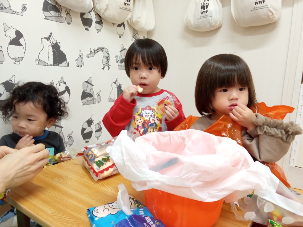 やはり、この時が1番楽しそうでした😁笑今日のおやつにそのお菓子を食べ残りはお家に持って帰りましたー✨