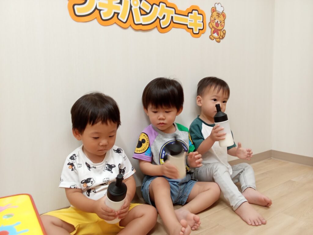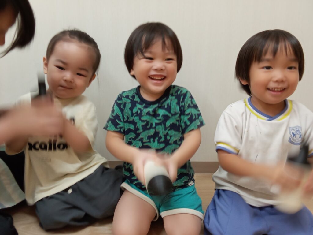次は0~1歳のグループ🐭お兄ちゃん、お姉ちゃんの真似をしてボトルをシェイクするのを手伝ってもらいました⭐️
