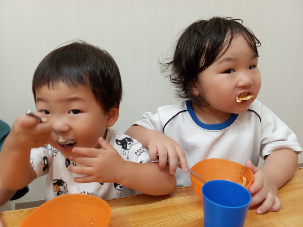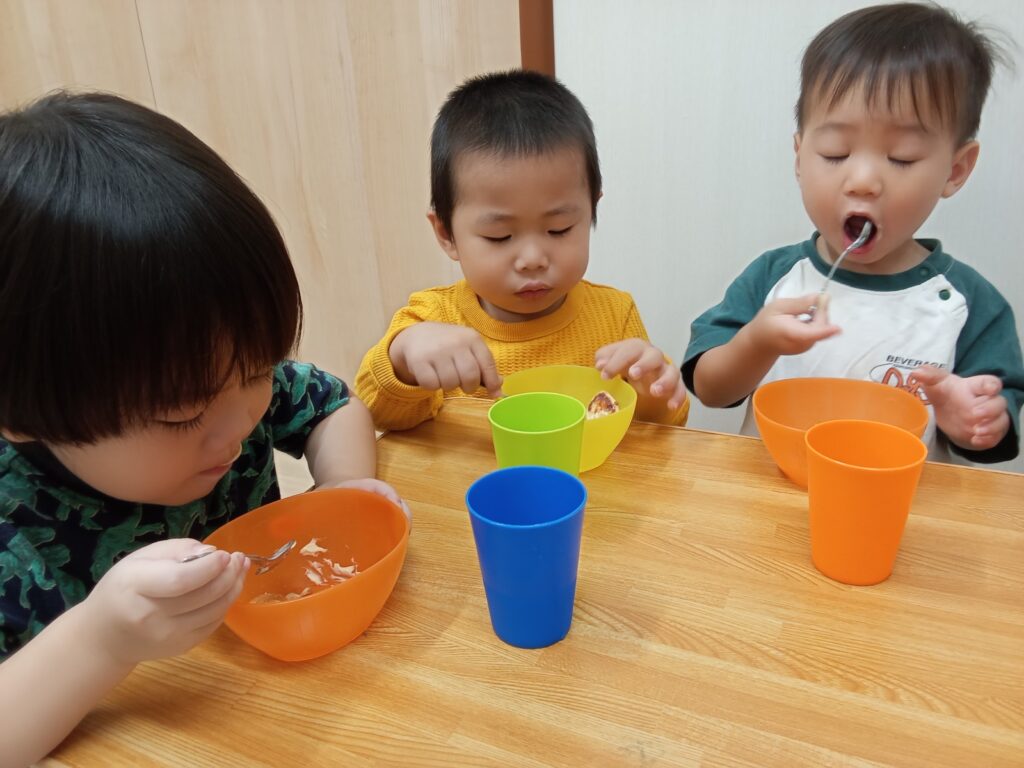 今回は卵を入れない作り方だったのですが、ほとんどの子がおかわりをしに来たり「おいしい😋」と声が出るぐらい好評でした❤️