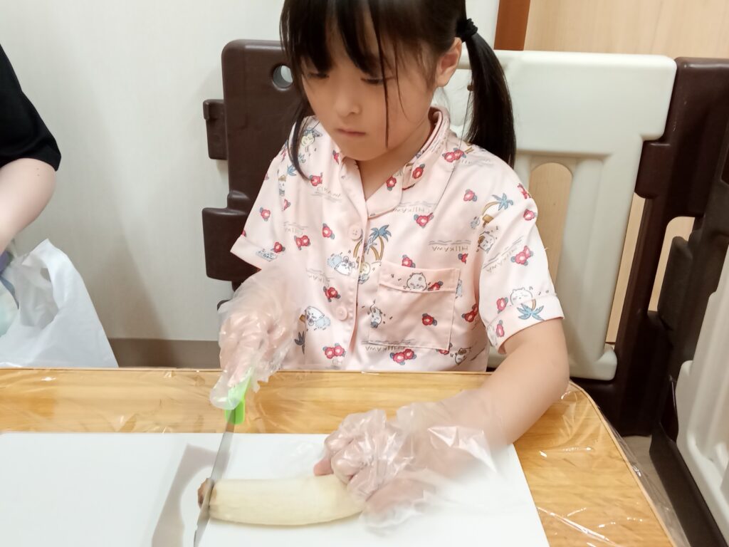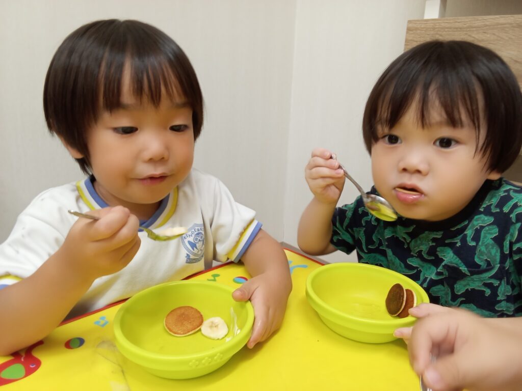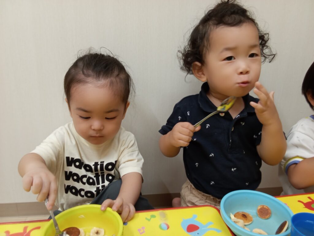 最後は4歳以上のグループ🦁パンケーキと一緒に食べるバナナを切ってもらったり盛り付けをしてもらいました⭐️