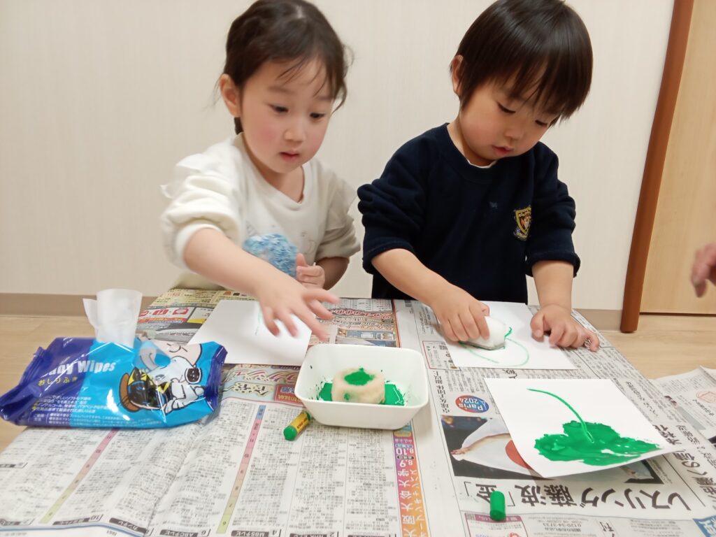 大きい子は、四つ葉になるように自分で位置を考えてスタンプしました!