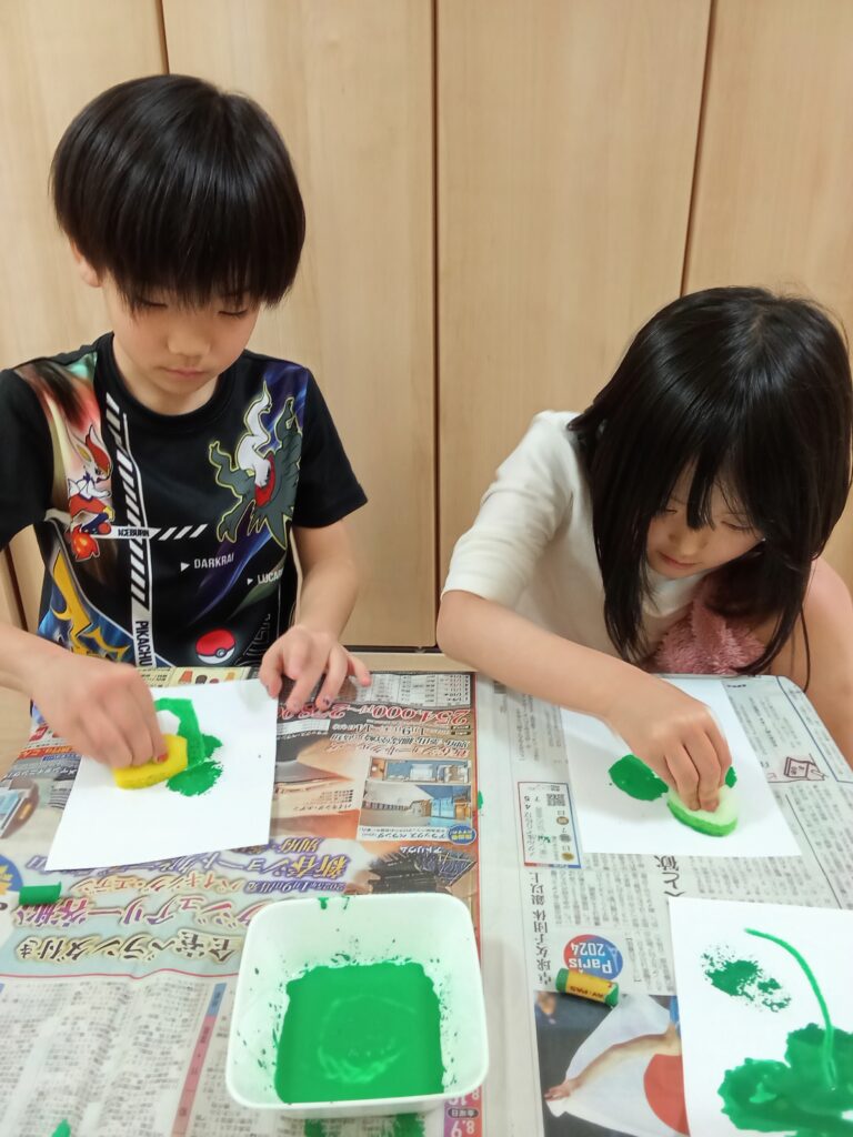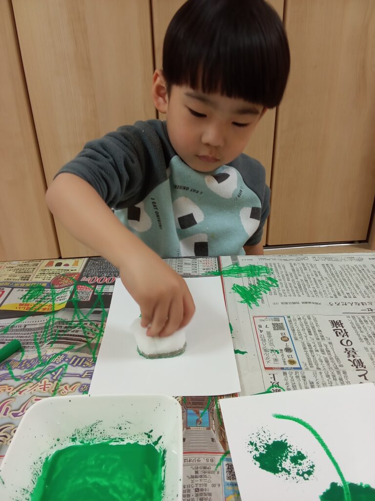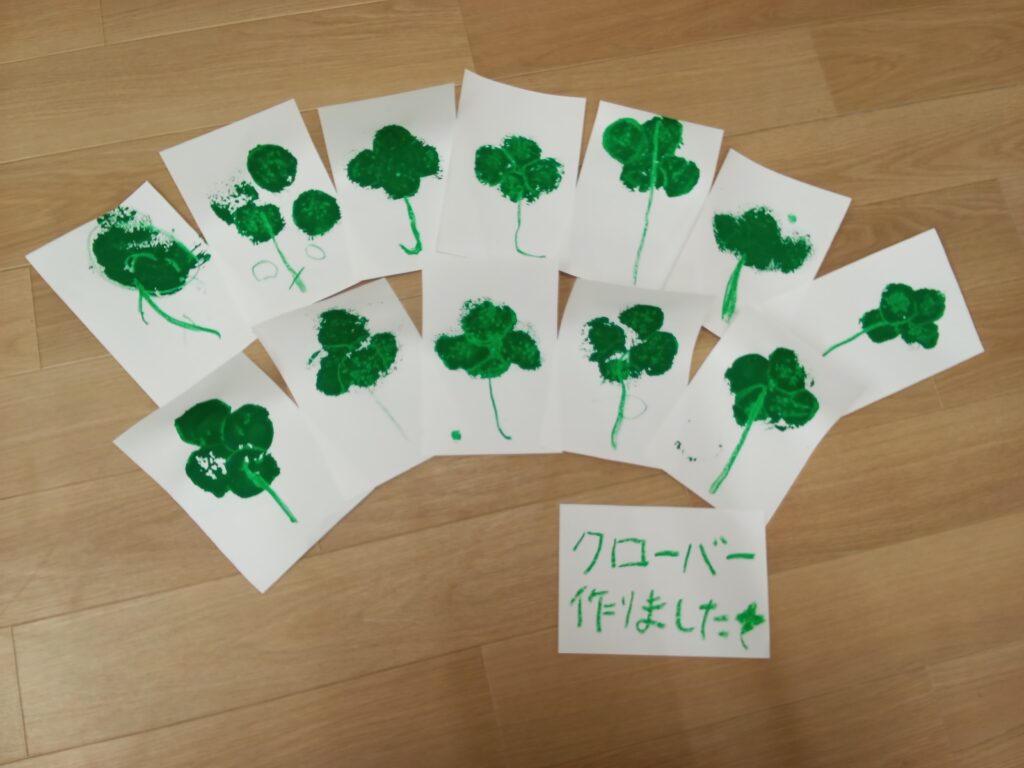 今日は絵の具とスポンジを使って四つ葉のクローバー🍀を作りました!