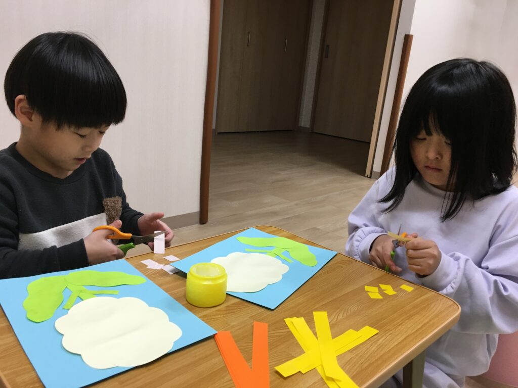 大きいグループさんは、細長い色画用紙を好きな形で貼り付けました!それぞれお花の形や、花びらの量が違っていて個性が溢れていました🌸葉っぱも上手に描いて可愛い菜の花がたくさん出来上がりました💛