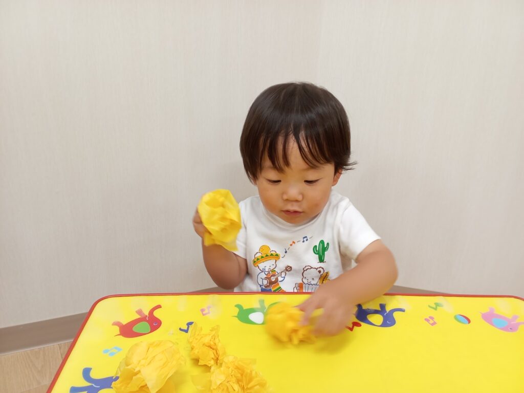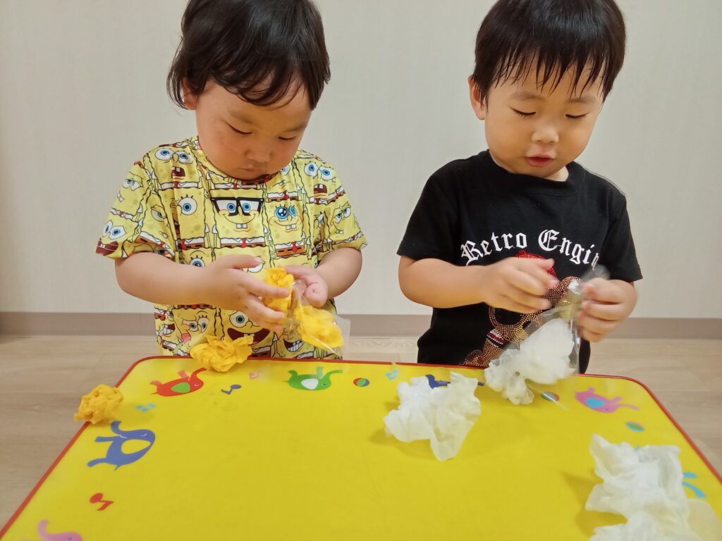 作りたい色を選んで花紙を丸めて袋に詰めてわたあめにしました!