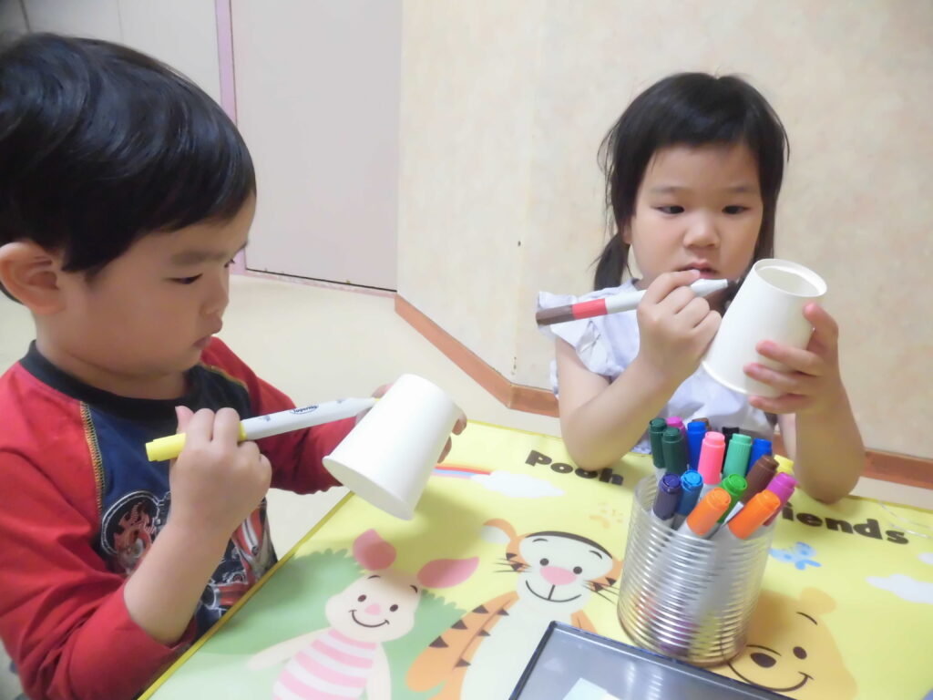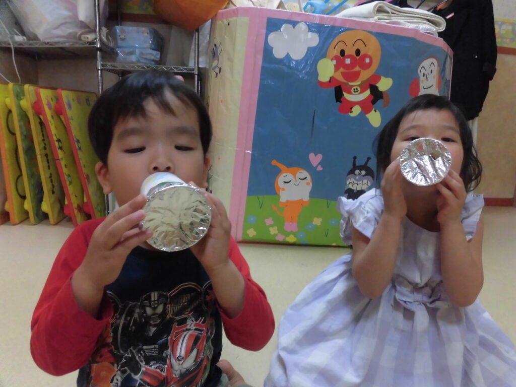 「今日はこれを作って遊びまーす」とマスクを当てて話しましたが、いまいち声が変わっていなかったようで、キョトンとされてしまいました😅