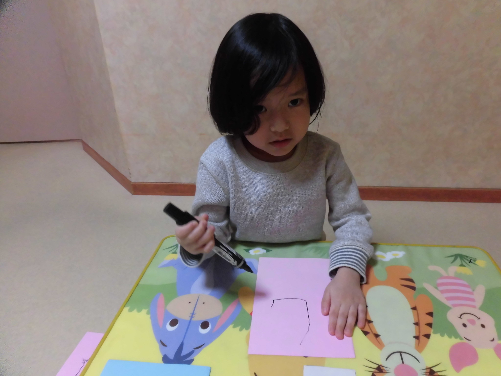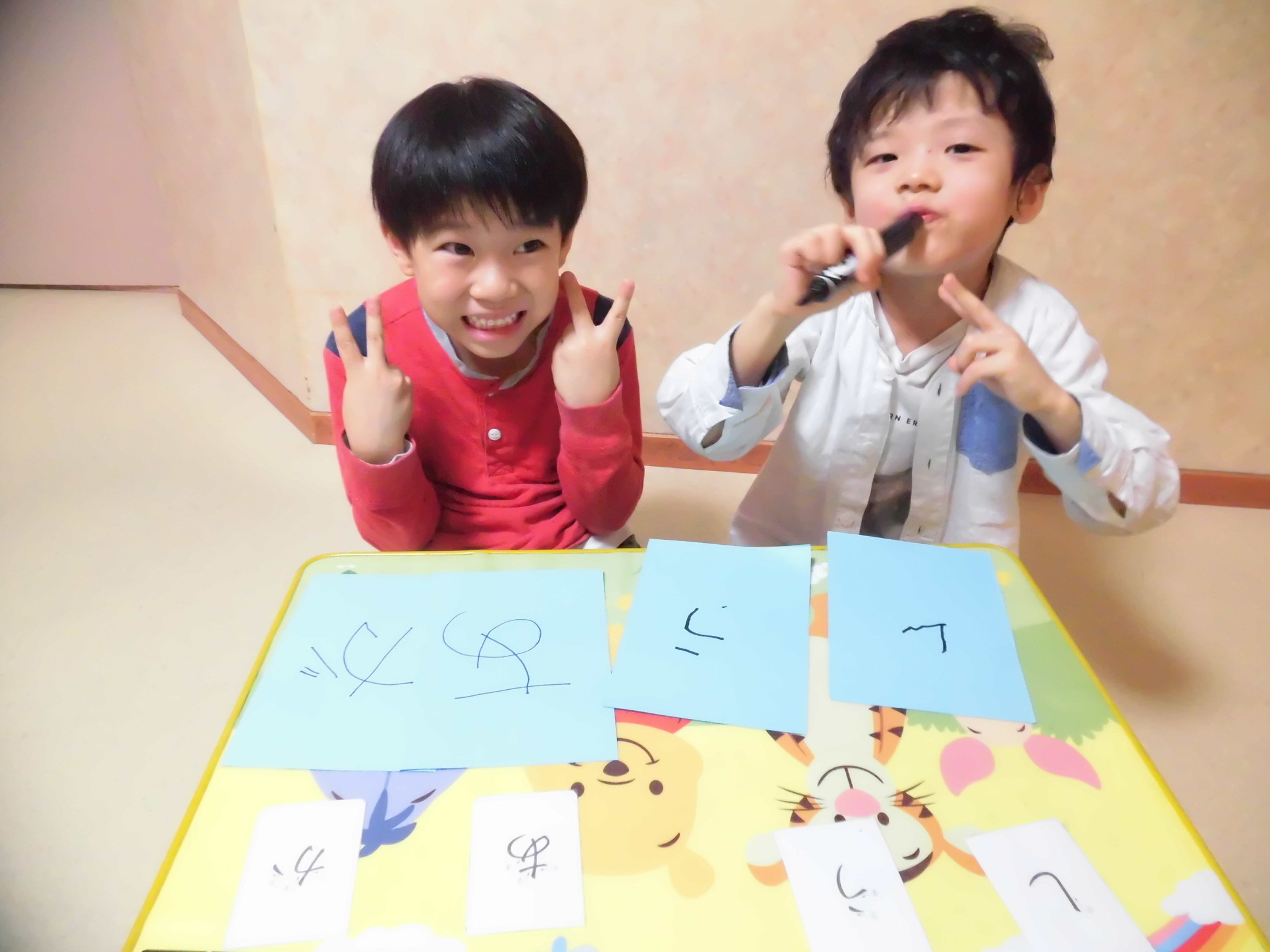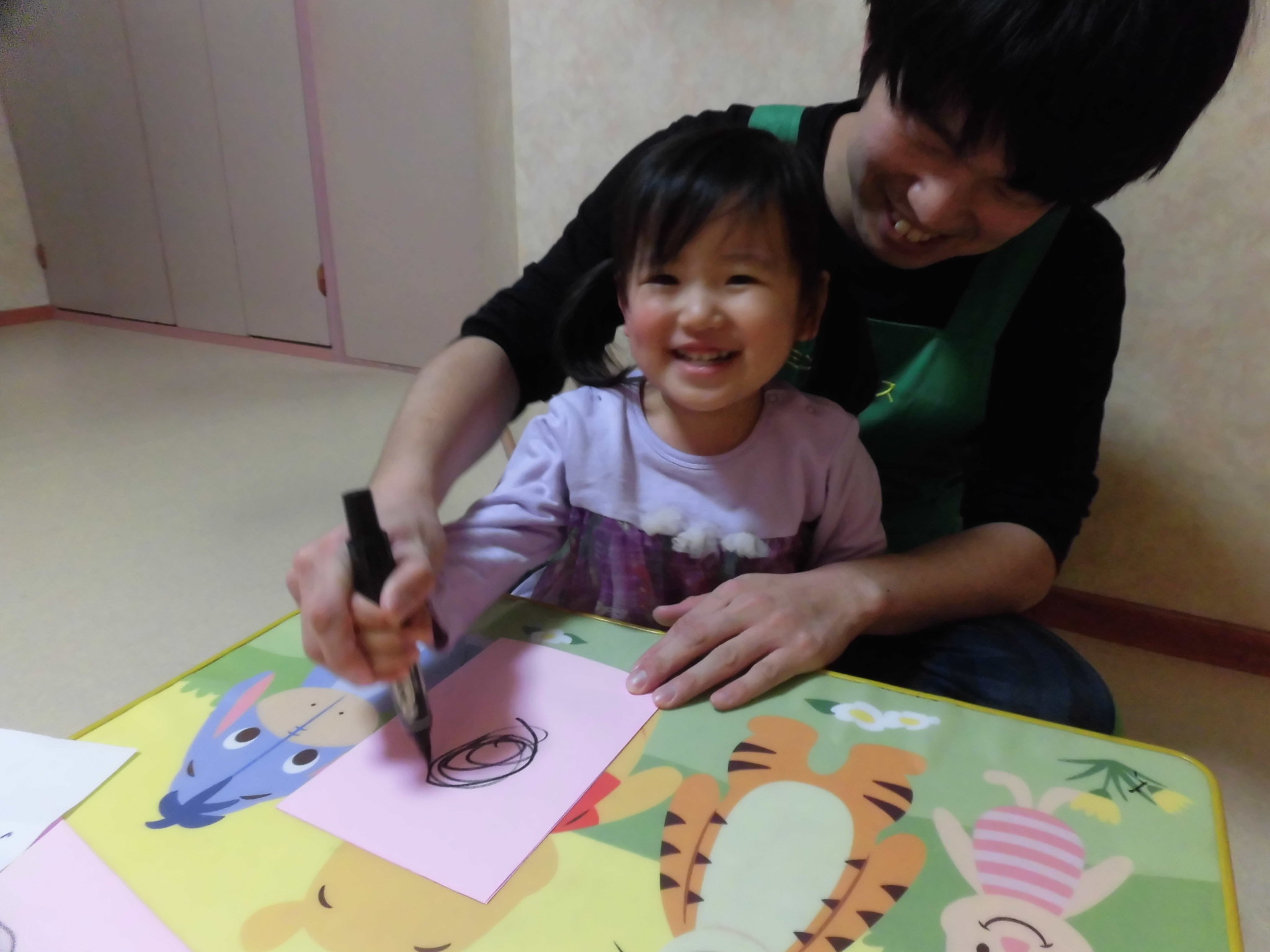 書きながら「これは『あ』や!」「これは『よ』!」と、平仮名をしっかりと読めるようになっていて、日頃のお勉強の頑張りを感じてとても嬉しかったです!