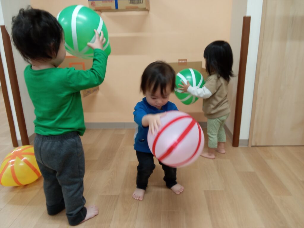 風船ボールを見ると嬉しそうに手に取りすぐに遊び出していましたよ😊