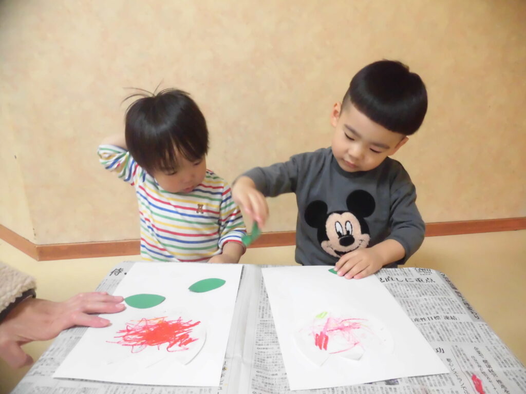 子ども達は、色を混ぜてカラフルなお花にしていましたよ!