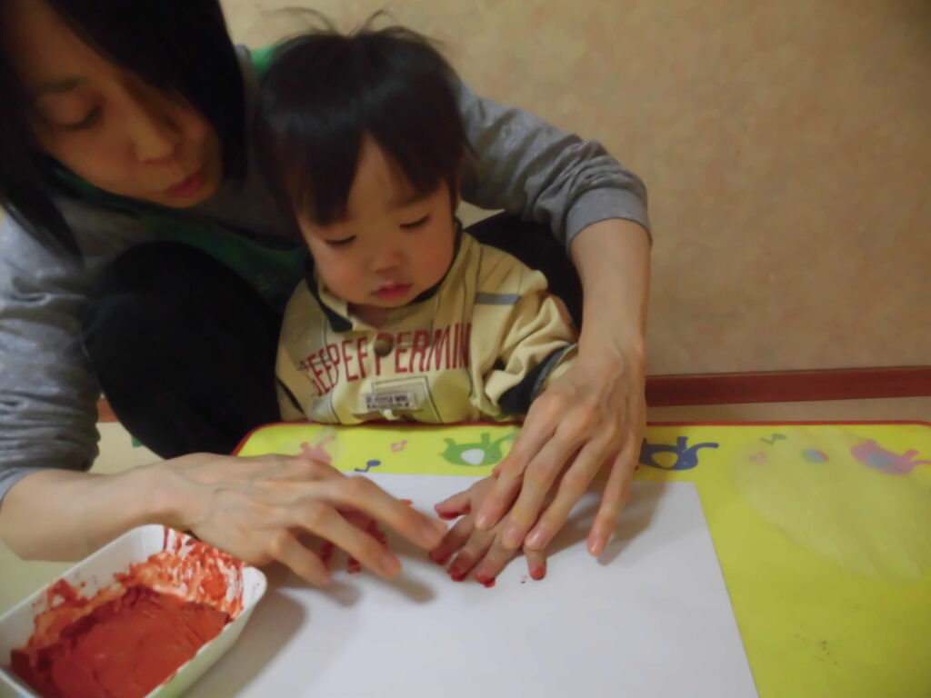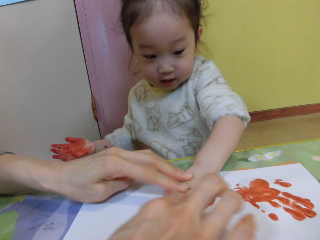 小さいグループさんは、楽しみながら手型を押してくれていました♪