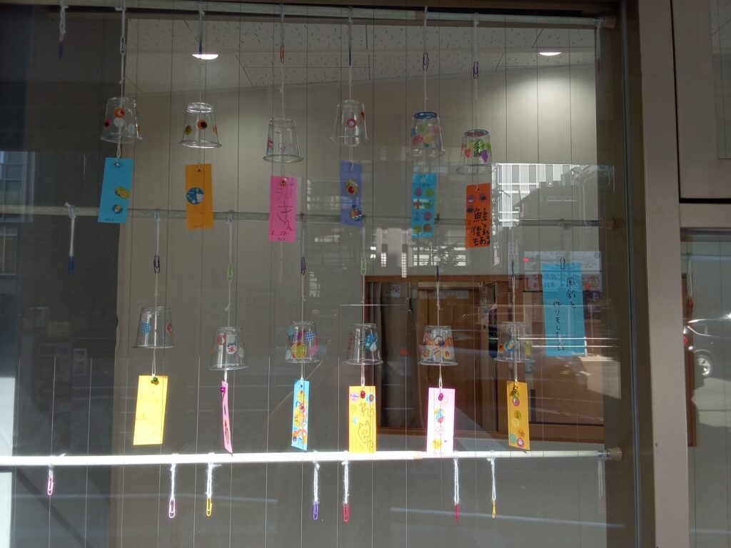 今日はプラスチックのコップと好きな色を選んだ画用紙に、ペンとシールを使って風鈴を作りました✨