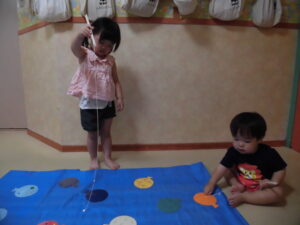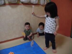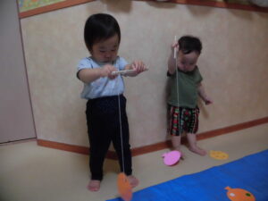 小さい子は紐が少し長かったので難しそうでした💦でも、なんとか頑張って1コ2コと釣っていましたよ!
