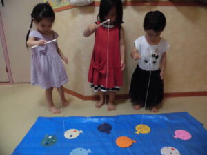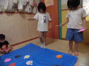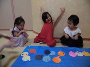 大きい子は1vs1で対戦し、どちらが多い数のヨーヨーを釣れるのかゲームをしました^ ^やっぱり勝ち負けが決まるゲームなので、大盛り上がり⭐︎盛り上がって楽しい時間となりました♡☺︎