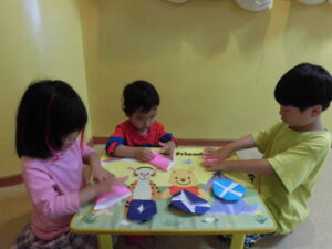 「できな〜い!」と途中言う子もいましたが、しっかり保育士のお話を聞いて、頑張って最後まで作っていました✨