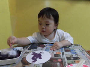 ちゃんとインクが付かなくなってくると、インクをたしてリズム良くたくさん押していました🎵