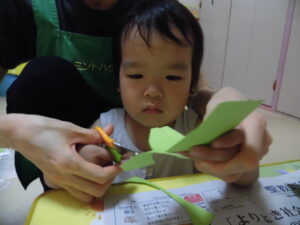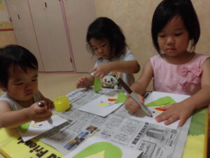 大きいグループさんは、スタンプをしたり、ハサミで切ったり、ノリで貼ったり・・・