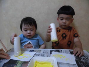 小さいグループさんは、「ペッタンペッタン」と楽しそうにスタンプしてくれました♪