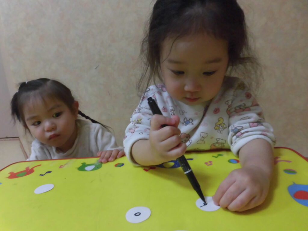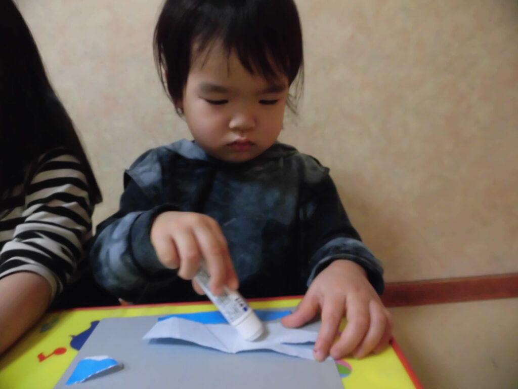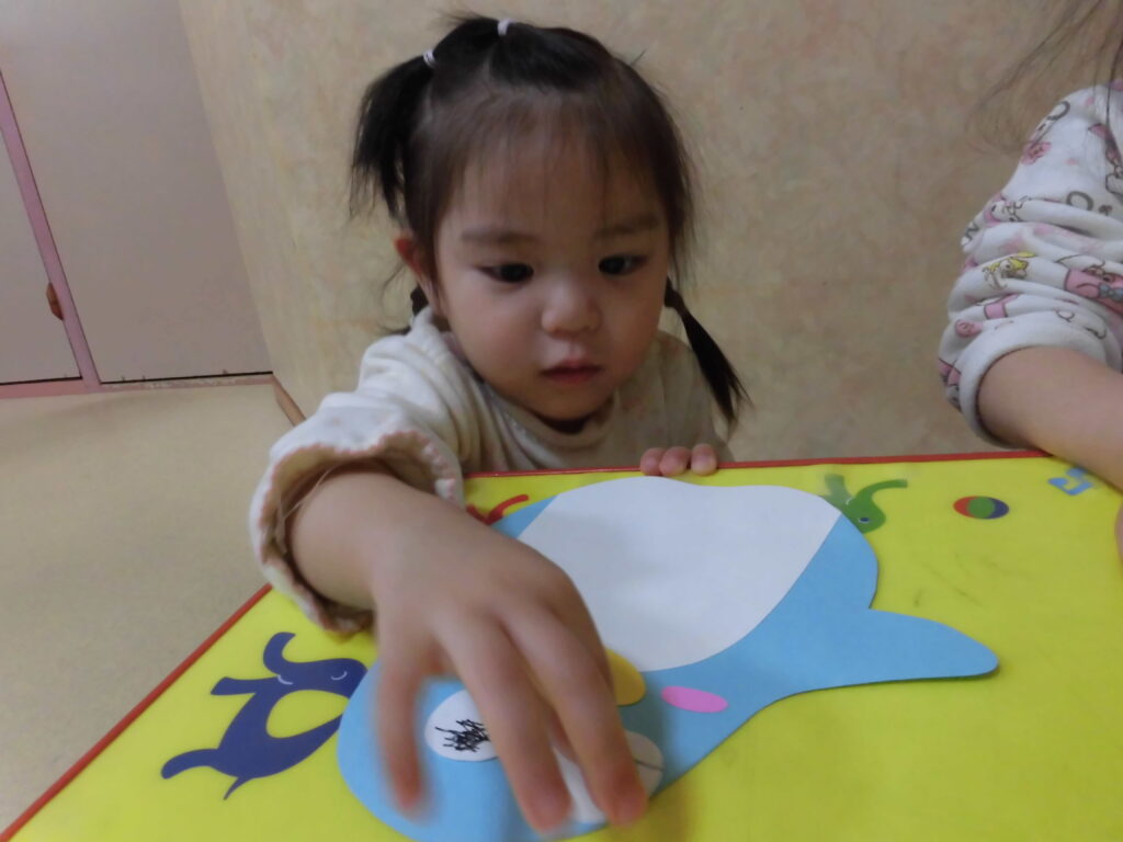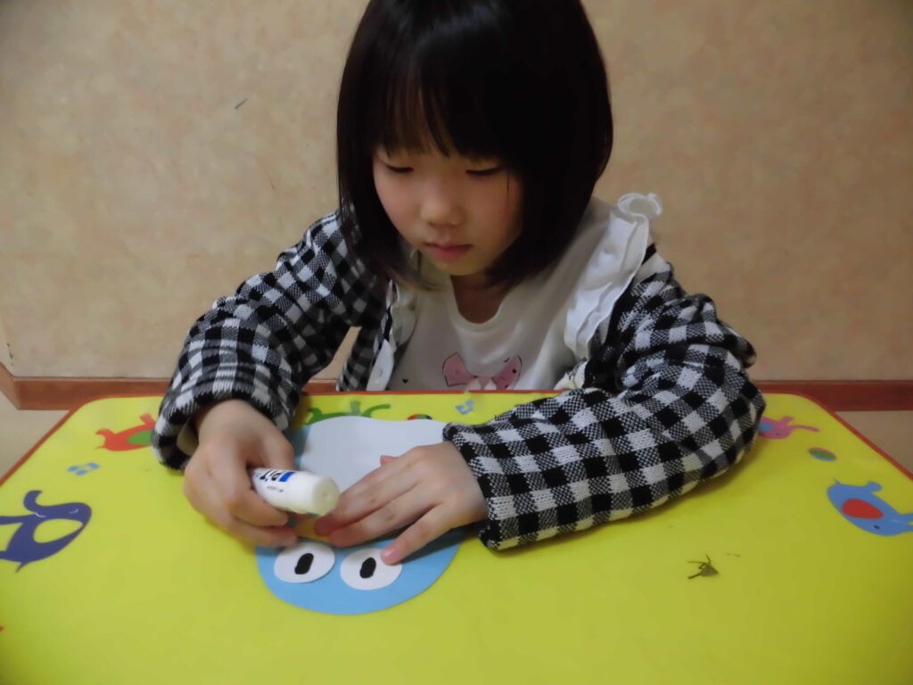 2才までの子はおめめを書いて、のりでぺたっと貼りました!