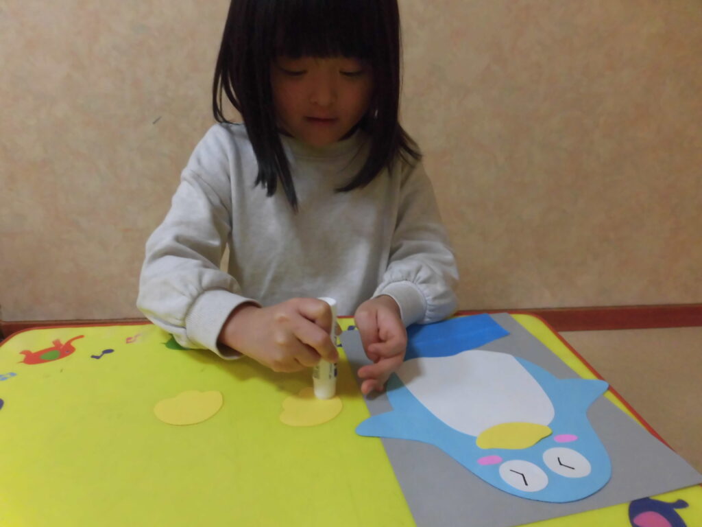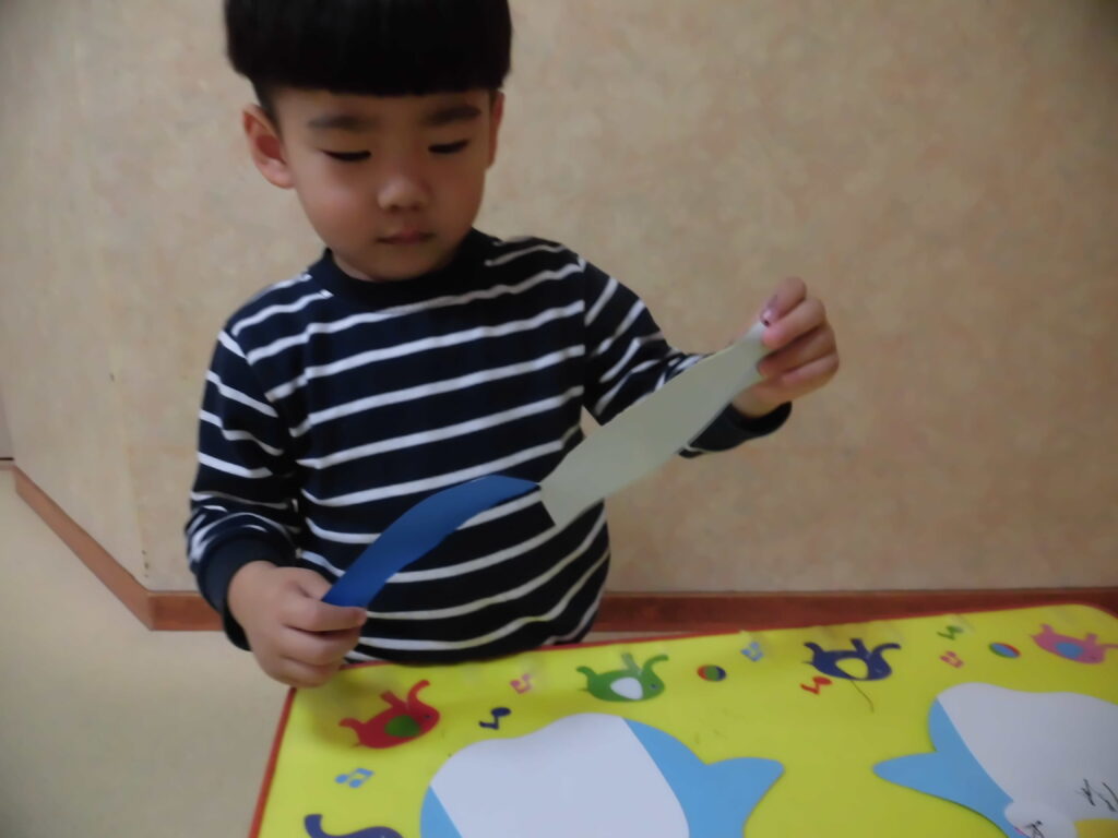次に、折り紙をビリビリと破いてのりで貼り氷に見立てました^_^