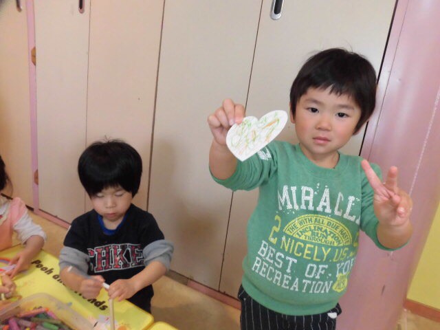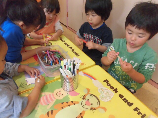 星とハートの形の画用紙からどちらか選んでもらい、自由に色や模様をデザインしました(^_^)