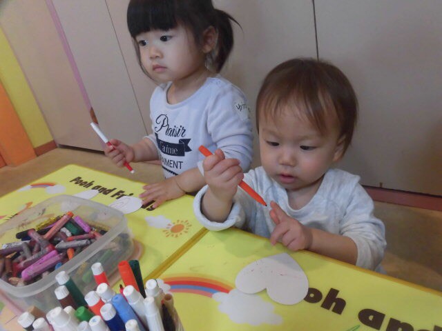 カラフルに色を塗ったり、「アンパンマン描く〜!」と楽しそうに描いていましたよ☆
