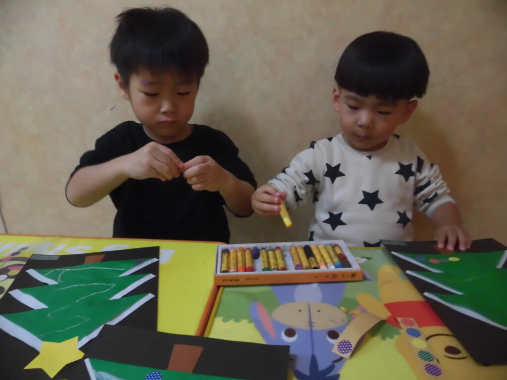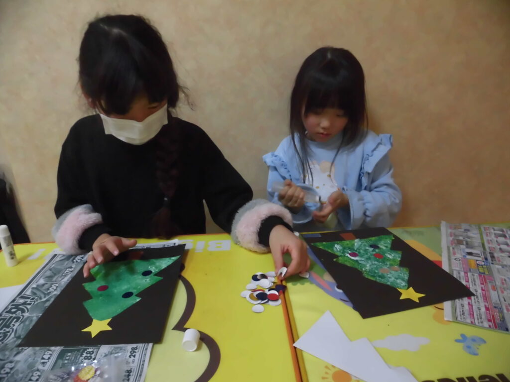 終始、お友達や保育士とクリスマスの話や作業の話をしながら楽しそうに作っていまたよ😊